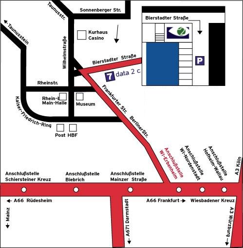 Contact Information data2c GmbH i. Gr. Bierstadter Strasse 7 D-65189 Wiesbaden Germany Tel: +49(0)611/1731-777 Fax: +49(0)611/1731-31 e-Mail: info@data2c.com How to find us You will find our headquarter here: ![]() |